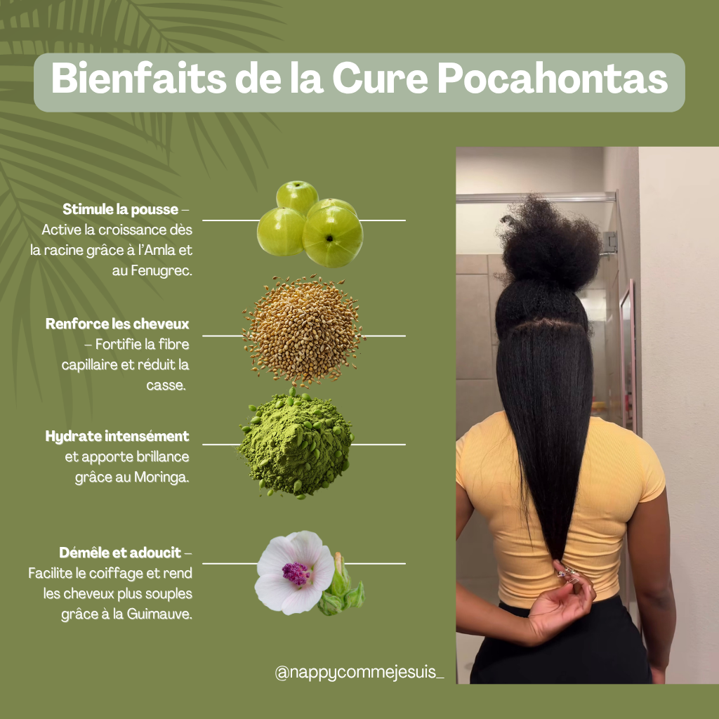 La cure est conçue pour tous les types de cheveux texturés : bouclés, frisés, crépus, métissés (types 3A à 4C). Elle convient aussi bien aux débutantes qu’aux femmes déjà avancées dans leur routine naturelle.