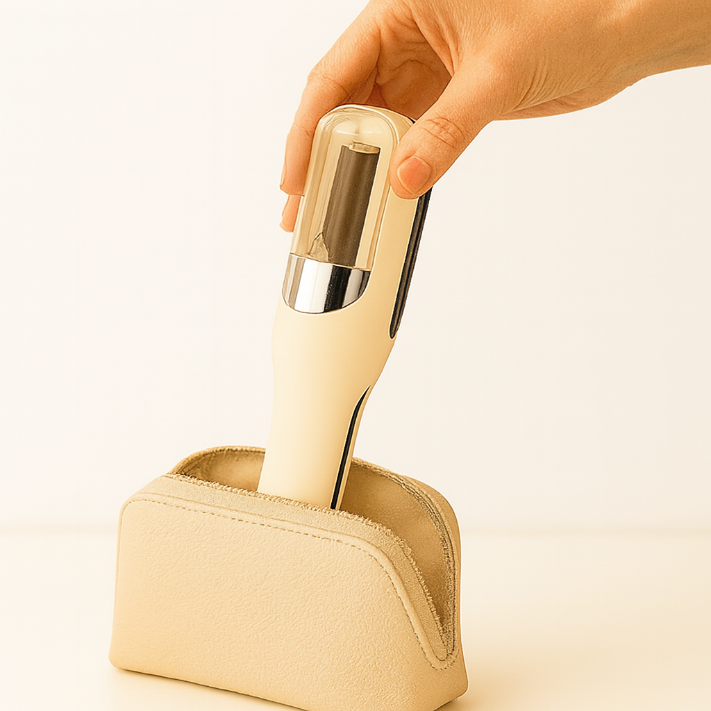 Notre appareil est pensé pour une utilisation dans votre salle de bain ou en déplacement. Il s'adapte à toutes les textures de cheveux et devient votre outil indispensable.